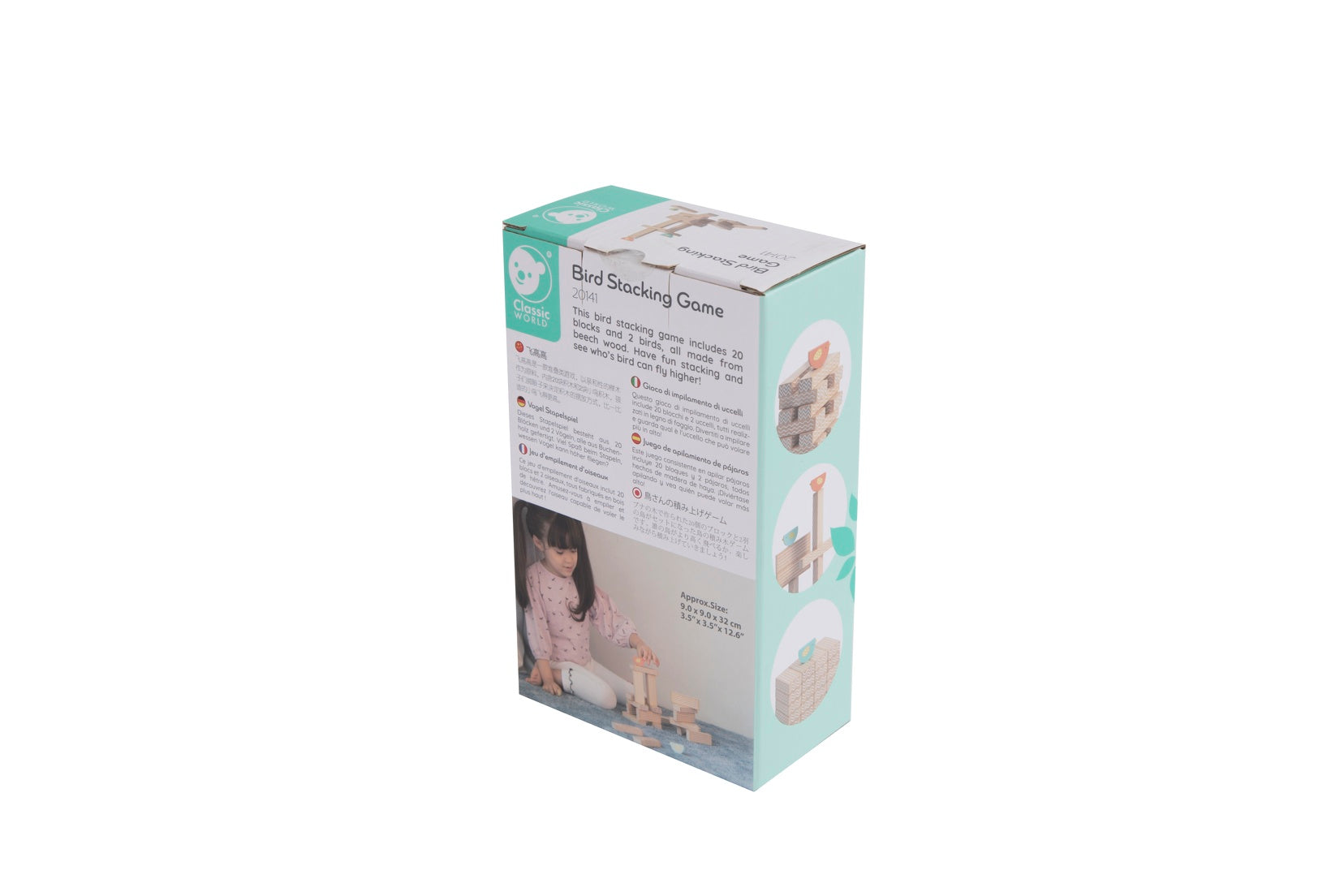 Este juego de apilar pájaros incluye 20 bloques y 2 pájaros, todos hechos de madera de haya. ¡Diviértete apilando y descubre quién puede volar más alto!