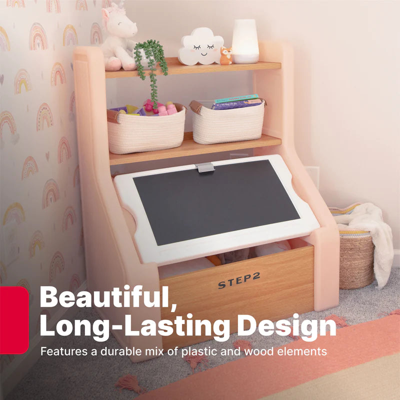 El Harmony Storage Chest de Step2 cuenta con un diseño revolucionario con seguridad, conveniencia y atractiva apariencia en mente. Hecho en EUA de partes de EEUU e importadas de China.