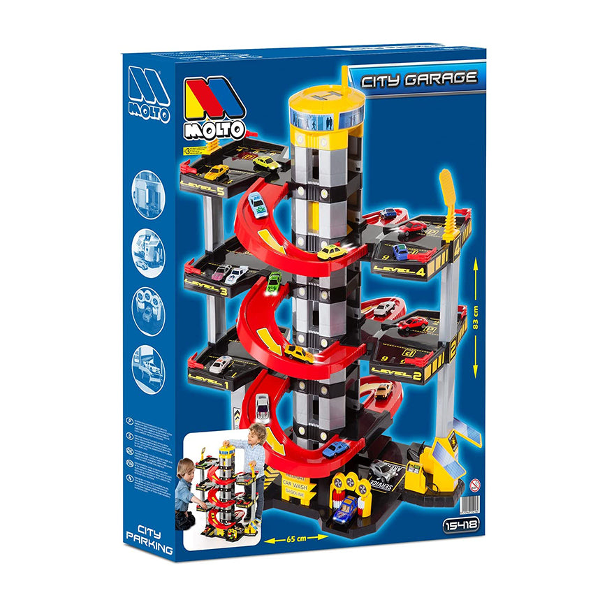 Las 6 plantas que contiene este parking lo convierten en un juguete con infinidad de opciones para que tus peques pasen un rato fenomenal a la vez que mejoran sus habilidades e imaginación. Su resistencia, su estabilidad y su montaje sencillo son insignias de juguetes MOLTO que te aseguran que la diversión de tus peques sea 100% segura.