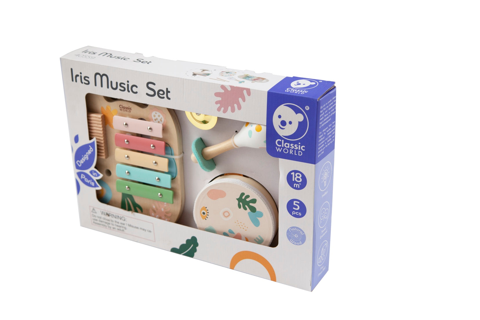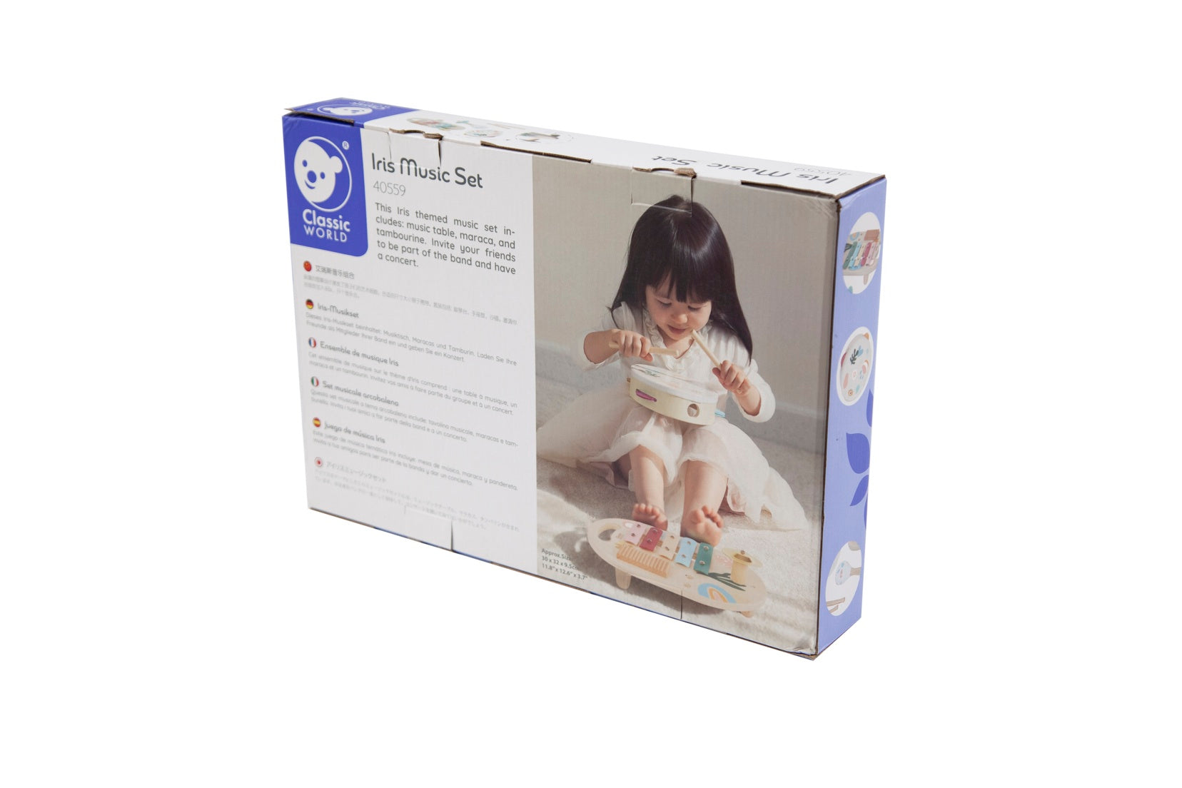 El set de música con temática de iris incluye: mesa de música, maraca y pandereta. Invita a tus amigos a ser parte de la banda y tener un concierto.