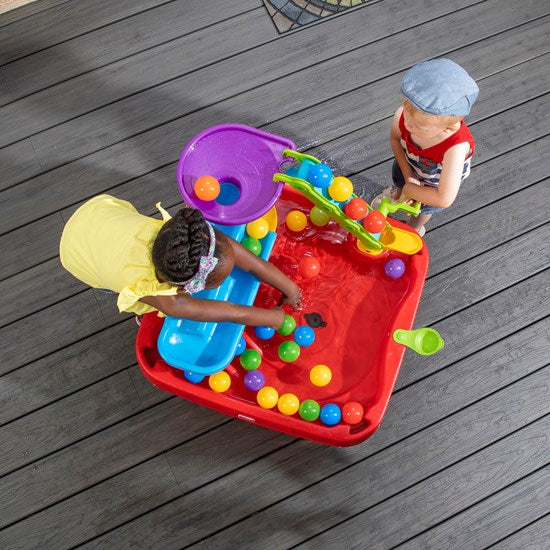 - ¡Agregue agua a la mesa para mejorar el juego sensorial de pelota! El diseño duradero de resina EverTough ™ hace que esta mesa sea ideal para uso en interiores y exteriores.