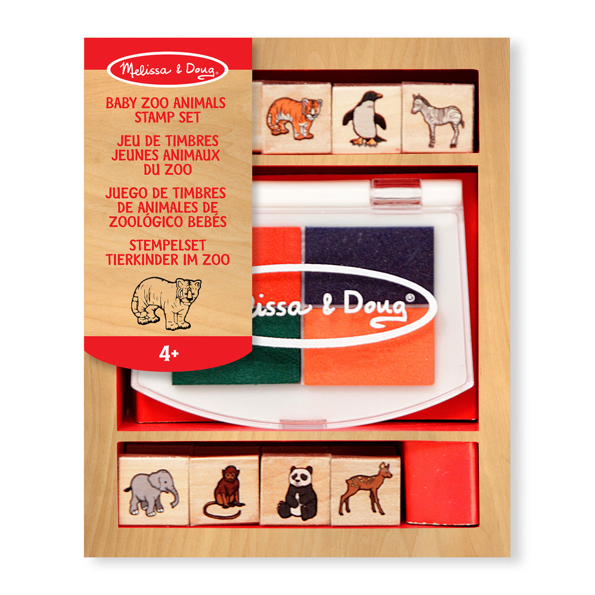 Ocho sellos de animales detallados con almohadilla de tinta de 4 colores ayudan a que los niños creen un sinnúmero de escenas de animales, todos en una caja de madera de colores. ¡Los niños van a utilizarla una y otra vez! no tóxico adecuado para niños de tinta lavable.