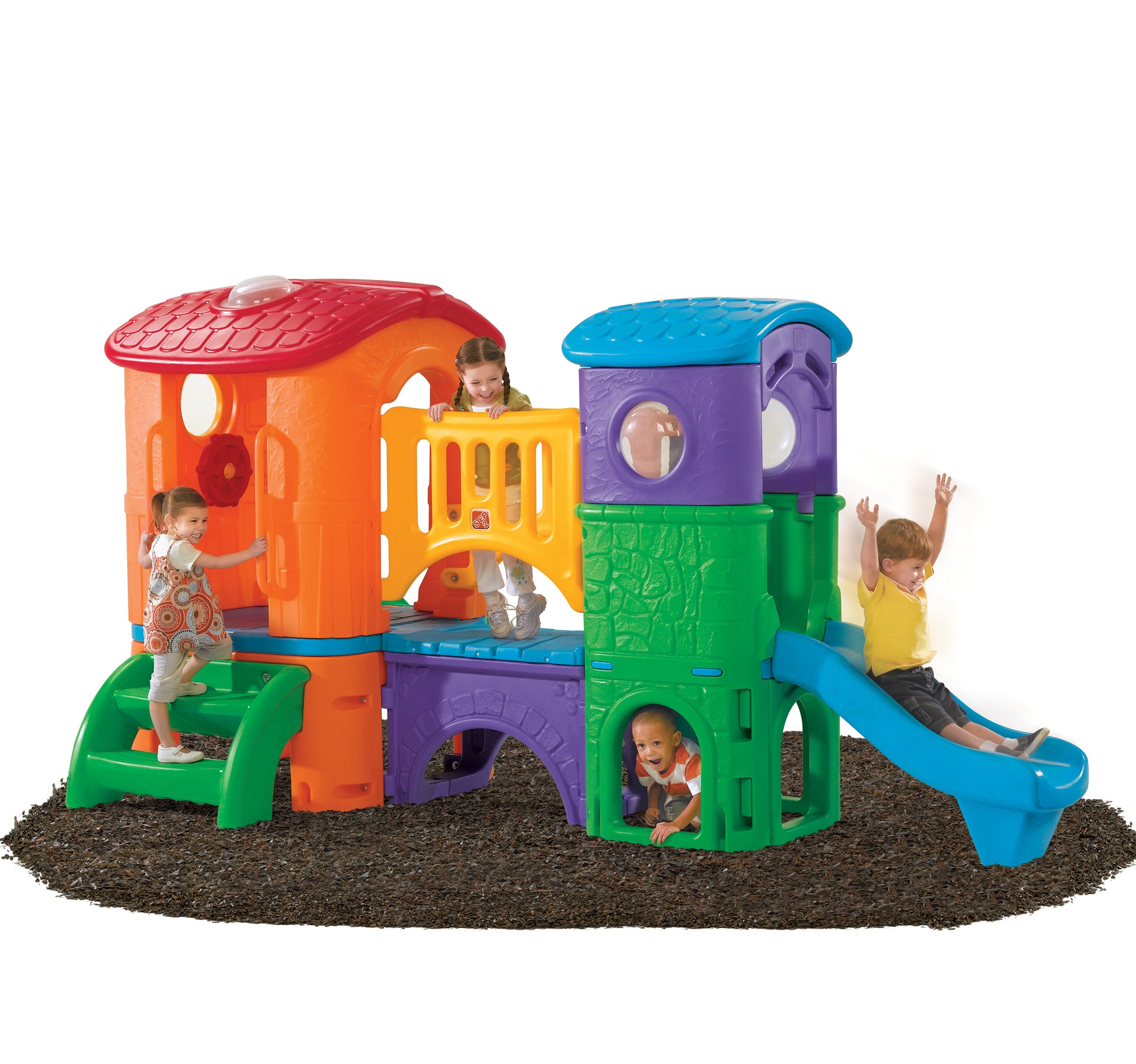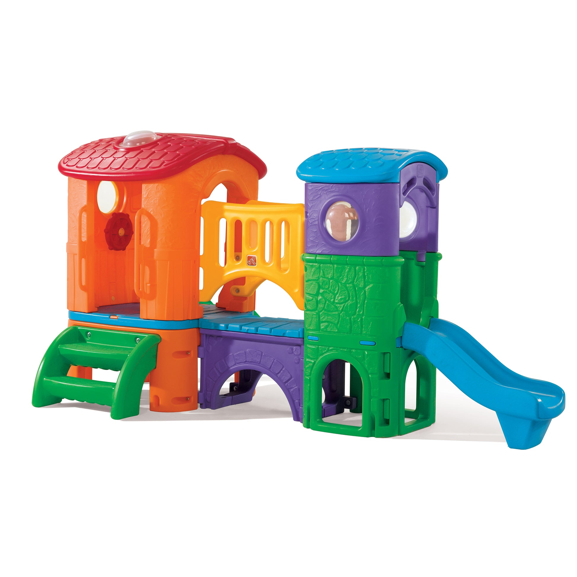 Trae el gimnasio de jungla al patio trasero de tu casa con este Clubhouse Climber de Step2. Los niños aman escalar, esconderse y deslizarse, y lo padres aman alentar los juegos activos. Los niños pueden deslizarse por la resbaladilla, pretender que manejan un coche con el volante mientras están en una de las torres del escalador, o jugar al guardia del castillo mientras cruzan por el puente empotrado. El Escalador Casaclub sera el patio de juegos personal de tus hijos! Las escaleras del Escalador ¡Tus niños escalarán, se deslizarán y gatearán por horas explorando este grande escalador! Hecho en EUA.