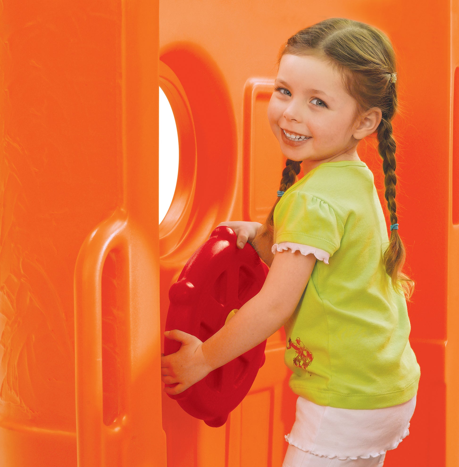 - El Clubhouse Climber tiene un tragaluz, volante para que los niños usen durante el juego simulado y 2 resbaladillas