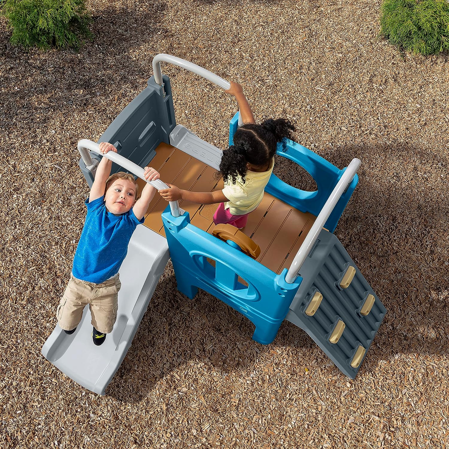 ¡El escalador para niños pequeños Scout & Slide de Step2 crea un paraíso de juego en tu patio trasero! Los más pequeños pueden subir la escalera o las paredes del parque infantil, deslizarse por el tobogán y vivir aventuras de juego imaginarios con el volante.