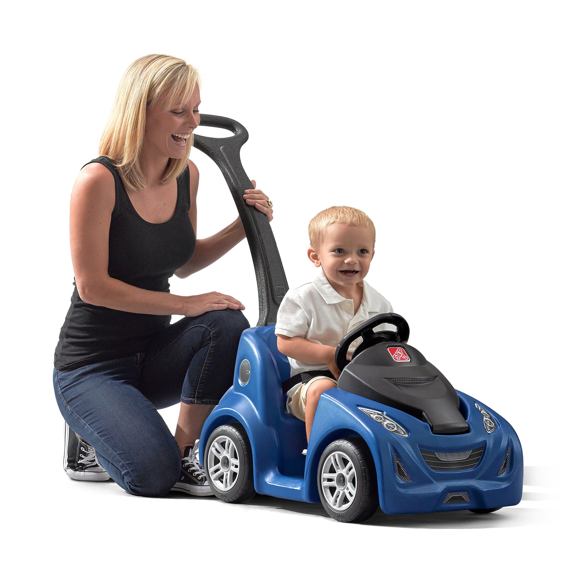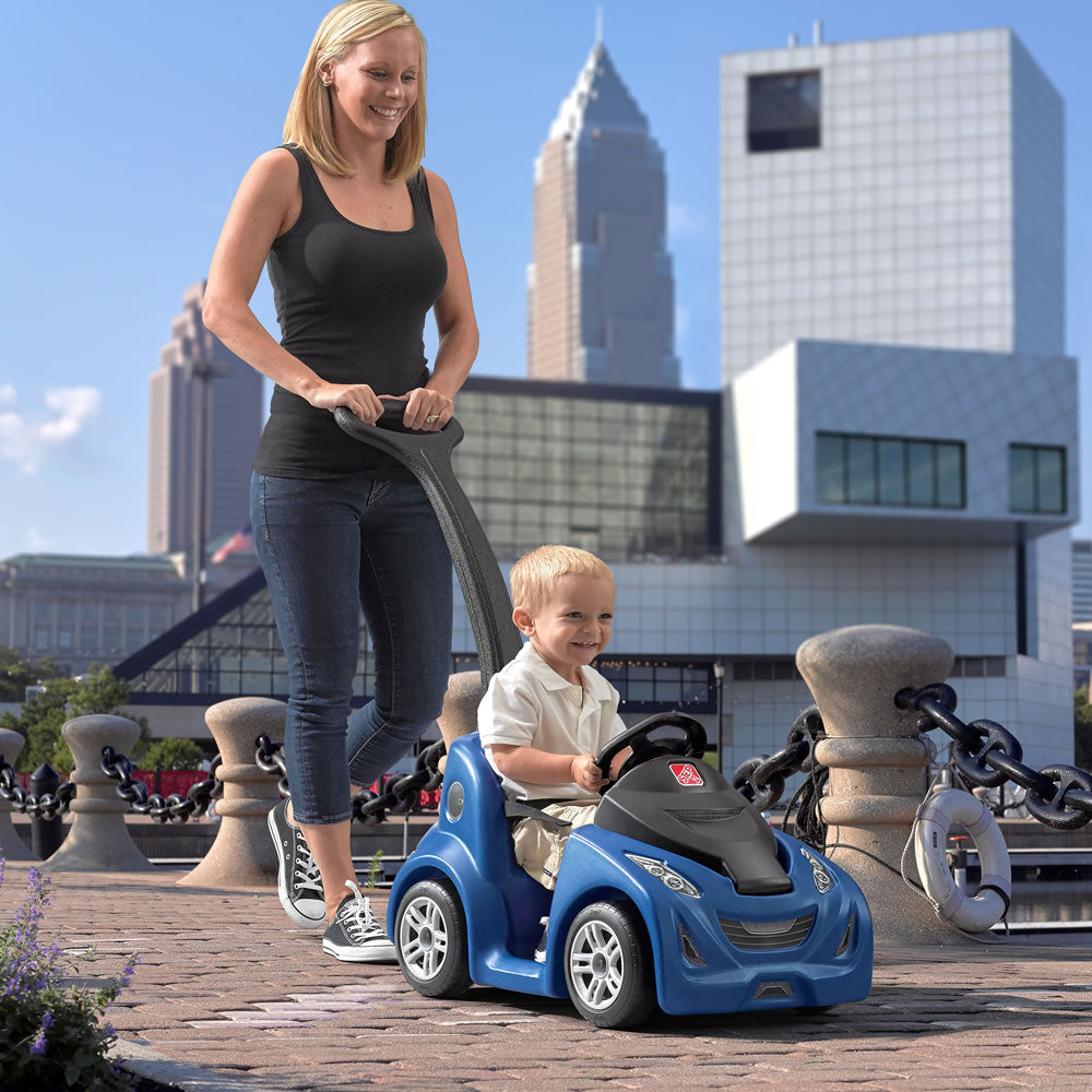 Tus pequeños serán el centro de las miradas al pasear en el ultra-estético montable Push Around Buggy GT de Step2. Mamá y papá pueden llevar a los pequeños en u paseo extra largo al almacenar snacks y bebidas en el conveniente compartimento de almacenaje bajo el capo. Este montable para niños con estilo permite a los conductores principiantes disfrutar de un cómodo pase por el vecindario mientras juegan a manejar con el volante simulado. Este montable empujable para niños es perfecto para cualquier pequeño entusiasta de los automóviles! Hecho en EUA con partes nacionales e importadas.