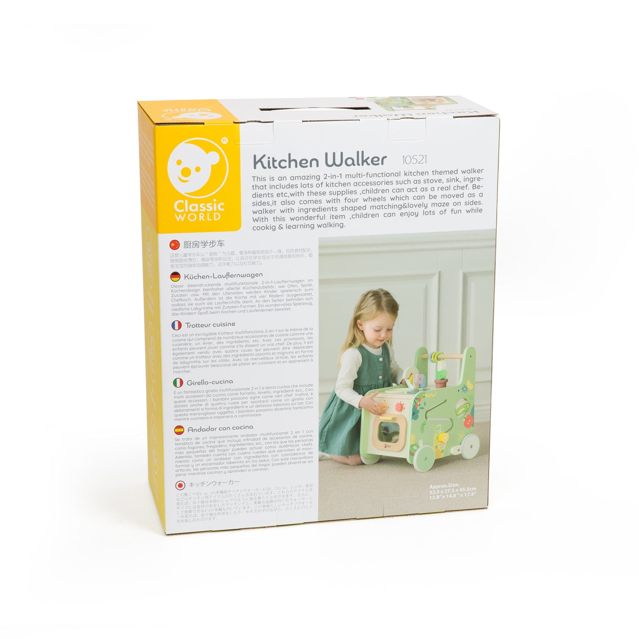 Este es un increíble andador temático de cocina funcional 2-en-1 que incluye muchos accesorios de cocina como estufa, fregadero, ingredientes, etc. Con estos suministros, los niños pueden cocinar una cena deliciosa. Mientras tanto, también viene con cuatro ruedas que se pueden mover como un andador con un encantador laberinto en forma de ingredientes a los lados. Con este maravilloso juguete, los niños podrán disfrutar de mucha diversión tanto cocinando como aprendiendo a caminar.