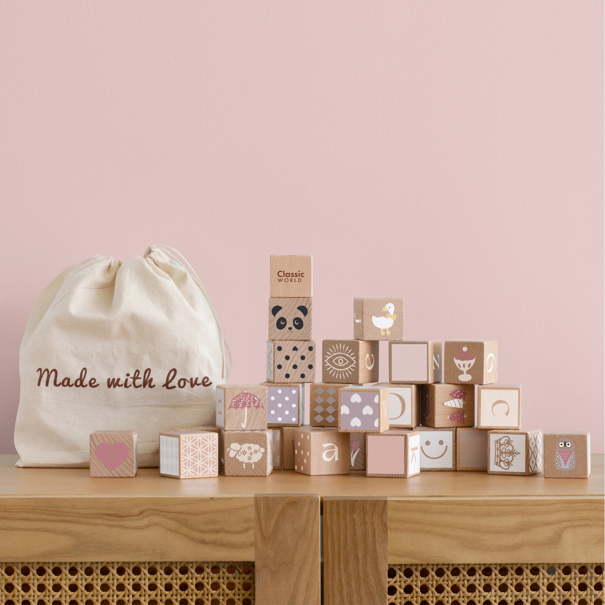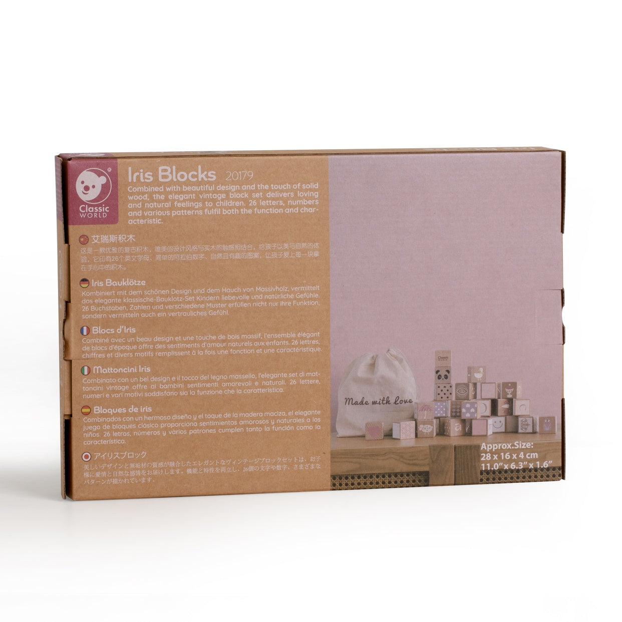 Combinado con un hermoso diseño y el toque de madera maciza, el elegante juego de bloques vintage brinda sentimientos cariñosos y naturales a los niños. Sus 26 letras, números y diversos patrones cumplen su función característica.