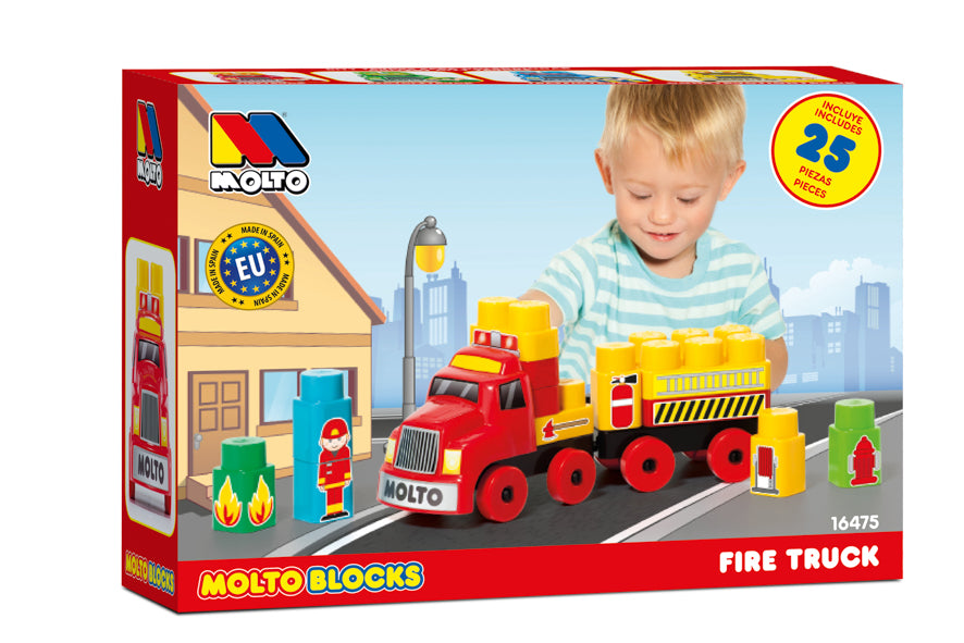 Nuevo juego de bloques de construcción compuesto por 25 piezas de distintos colores y tamaños para que construyan el camión de construcción de la forma más divertida.